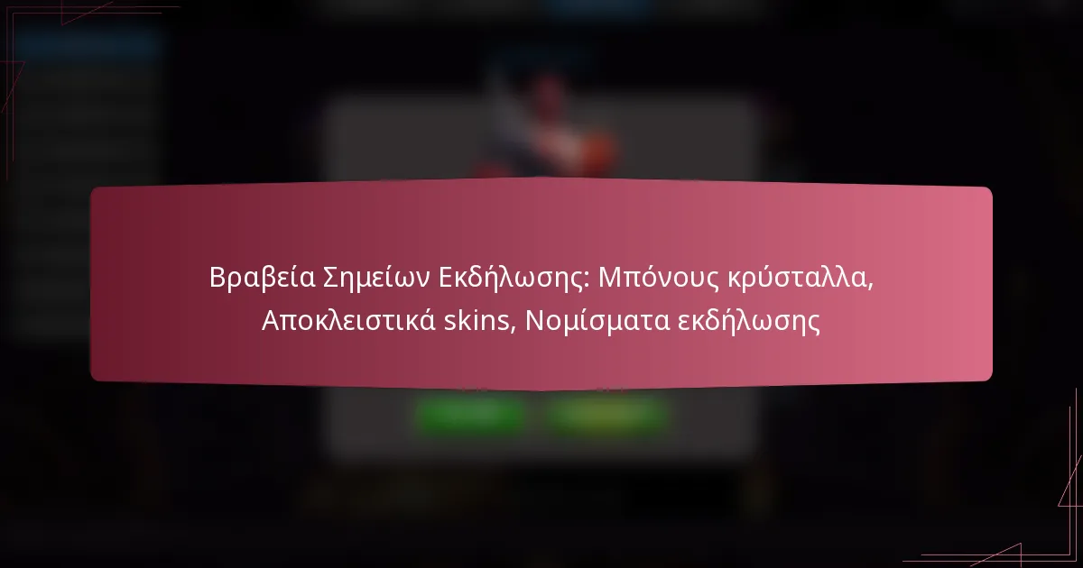 Βραβεία Σημείων Εκδήλωσης: Μπόνους κρύσταλλα, Αποκλειστικά skins, Νομίσματα εκδήλωσης